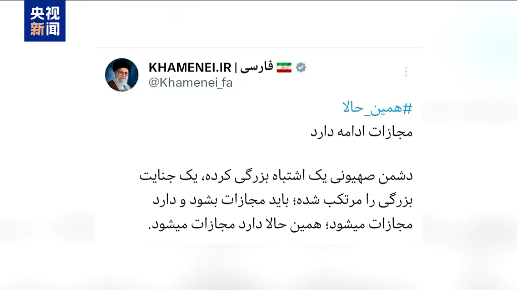 ▲哈梅內伊在社交媒體發表聲明的截圖